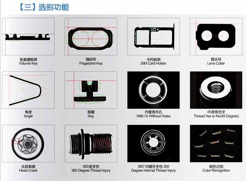 硬體配備包含振動送料機、下料軌道、檢驗平臺、計算機系統為一安全、便利,且節省人力成本的自動化設備。分別介紹如下: